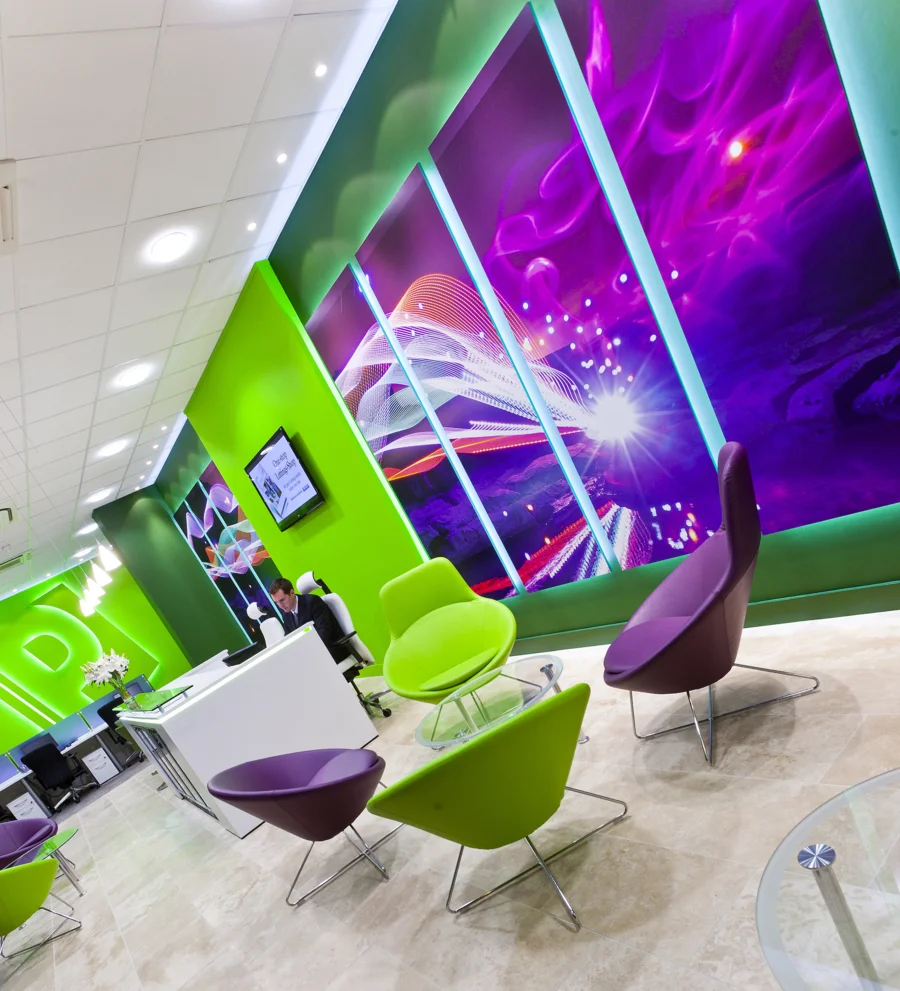 As a property company, Belgarum’s street presence on the high street has to be eye catching and draw people in. To do this, we used custom LEDs illuminating the front facing reception area. We also created an attractive window display using LEDs to showcase the properties. The bespoke desk we commisioned had premium finishes, ensuring every detail was considered and on brand. Lastly the large scale printed graphics we used along the cupboard walls added warmth whilst neatly concealing the storage facilities.