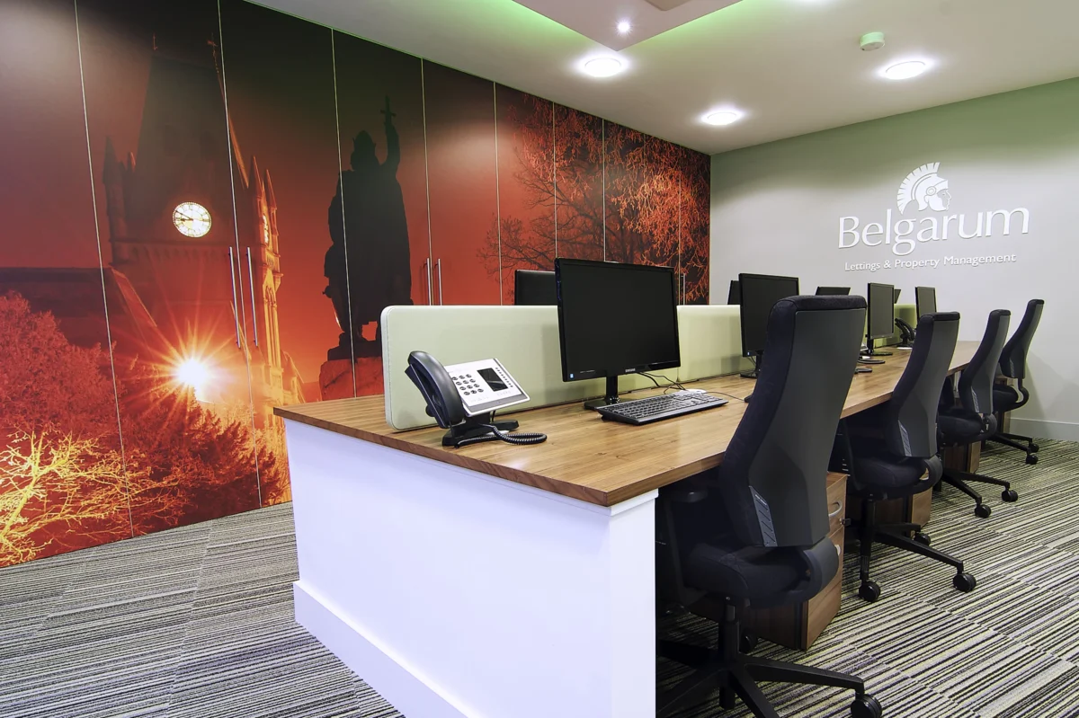 Belgarum, a boutique lettings and property firm, appointed us to manage the refurbishment of their Winchester head office. This included production of the creative concept and end-to-end project management involving supplier liaison and financial planning.